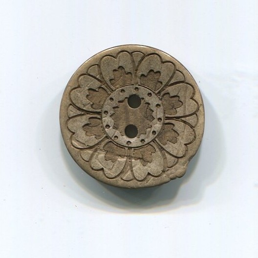 Brunlig kokosknap med flot blomst.