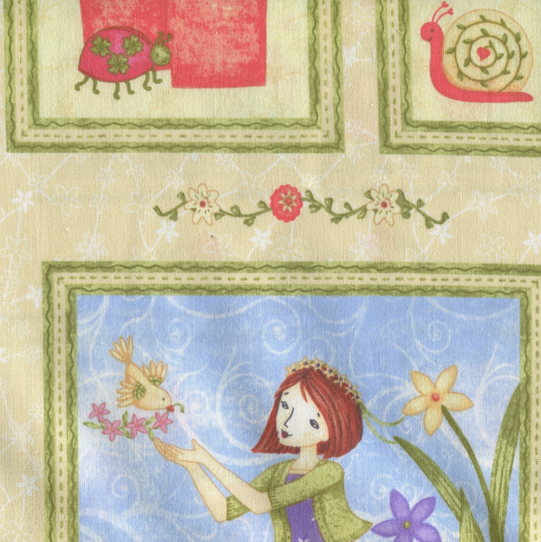 Et stykke stof med mange fine billeder til havefolket – stoffet er opdelt i rapporter på 60 cm.